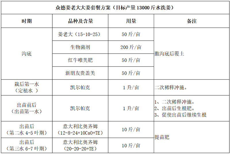 ?。?)大、中、微量元素兼顧:大姜除對氮磷鉀的需求外,對鈣、鎂需求也很大,中量元素鈣鎂及微量元素應早施。