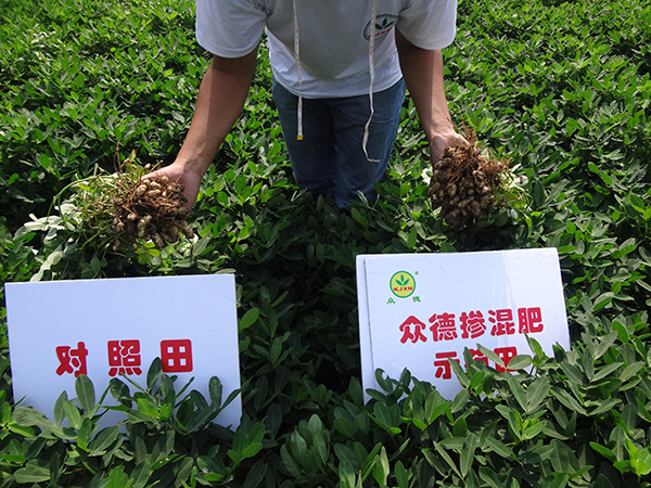 沂南縣辛集北左泉村農(nóng)民顧守武,去年用眾德(16-12-14)120斤/畝,生物有機肥80斤/畝,新朋友貴蓋美30斤,持力硼2袋,在翻地前一次性施入,到9月10號收獲期測產(chǎn)1173斤,與對照田產(chǎn)量1055斤相比,畝增產(chǎn)118斤,增產(chǎn)幅度11.2%。顧先生滿臉喜悅的說:“用眾德花生高產(chǎn)套餐方案效果非常好,歸功于眾德系列肥料原料考究,配方合理,營養(yǎng)全面,對于重茬、土壤酸化等問題障礙能夠得到有效解決,改良并活化土壤,特別是態(tài)康科、康樸系列葉面肥,能促進花生根系和葉片生長,補充硼、鉬、鈣等中微肥,提高座果率、改善品質,提高產(chǎn)量,農(nóng)民最終獲得收益”